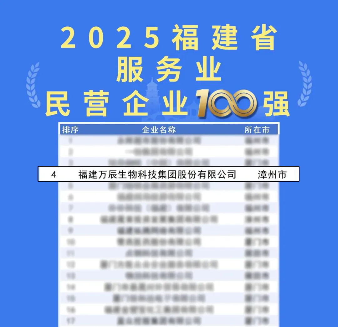 9月28日,2025福建省民營(yíng)企業(yè)100強(qiáng)發(fā)布暨寧德市產(chǎn)業(yè)招商推介會(huì)在寧德舉行,會(huì)上福建省工商聯(lián)發(fā)布了2025福建省民營(yíng)企業(yè)100強(qiáng)、制造業(yè)民營(yíng)企業(yè)100強(qiáng)、服務(wù)業(yè)民營(yíng)企業(yè)100強(qiáng)、創(chuàng)新型民營(yíng)企業(yè)100強(qiáng)4個(gè)榜單。萬(wàn)辰集團(tuán)登榜,位列2025福建民營(yíng)企業(yè)100強(qiáng)第16位、2025福建服務(wù)業(yè)民營(yíng)企業(yè)100強(qiáng)第4位。